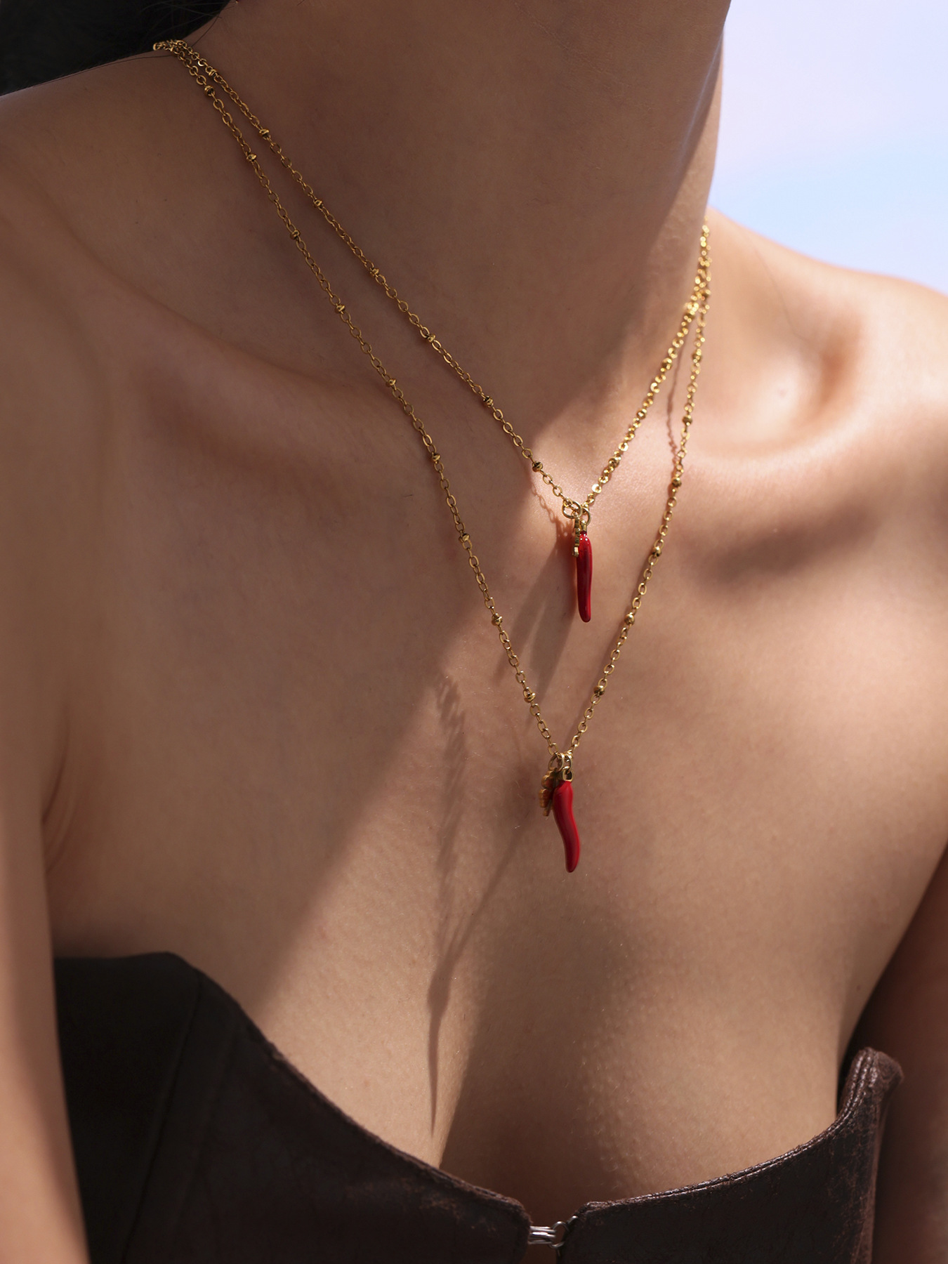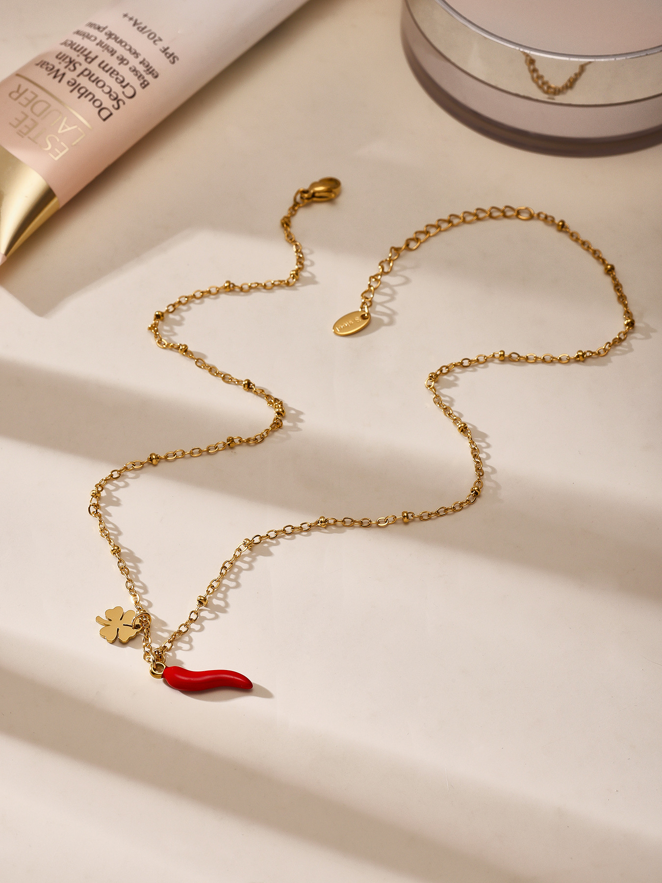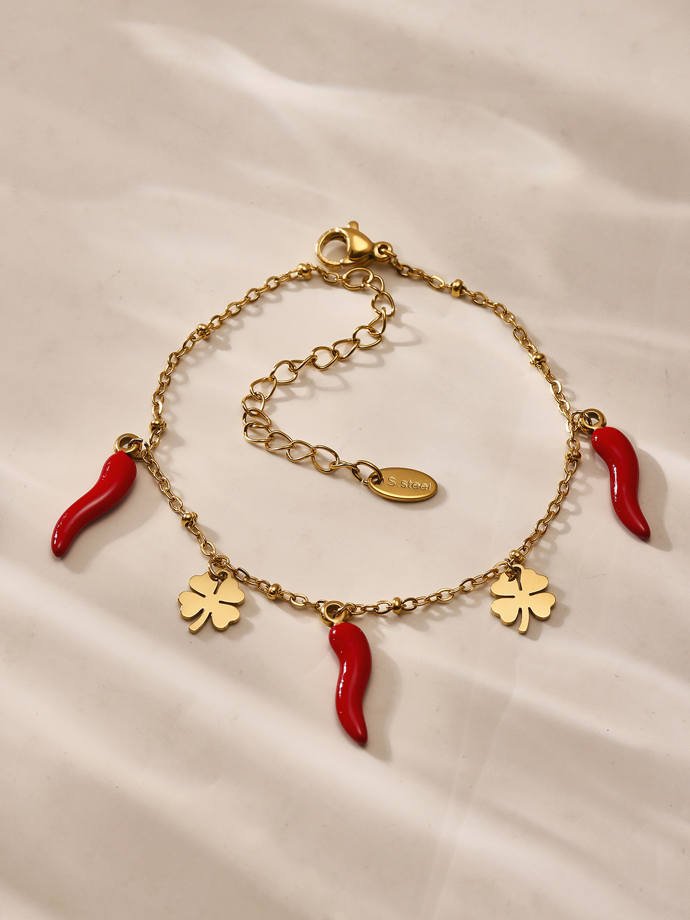 Color: TXP266-gold Red chilli necklace 405cm,TXP266-steel Red chilli necklace 405cm,TXE266-gold Red chilli bracelet 165cm,TXE266-steel Red chilli bracelet 165cm,d240-gold flower pendant 1,D240-steel flower pendant 1,d231-gold Red chilli pendant 1,D231-steel Red chilli pendant 1